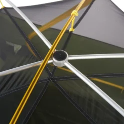 Le polyester 68 deniers du double-toit et du sol a un indice dâimpermĂ©abilitĂ© de 3000 mm, si bien que vous serez protĂ©gĂ© de lâhumiditĂ© et de la pluie. Lâhabitacle intĂ©rieur en tissu mesh est suffisamment ventilĂ© pour limiter le phĂ©nomĂšne de condensation, dĂ©tail important surtout si vous lâutilisez en mode 4 places. Au niveau du confort, câest une vraie « 4 personnes » avec une bonne habitabilitĂ©, un beau volume et un cotĂ© pratique et fonctionnel avec ses 2 entrĂ©es et 2 absides. Ouvertures qui facilitent les allĂ©es-et-venues des occupants. Vous pourrez aussi lâutiliser Ă trois pour plus de confort.