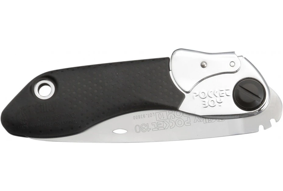 La Silky Pocketboy est dotĂ©e dâune lame de 130 mm et dâun manche en caoutchouc qui absorbe les vibrations et offre une prise en main agrĂ©able. Hors usage, la lame se replie Ă lâintĂ©rieur de la poignĂ©e.