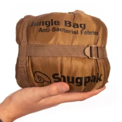 Le Jungle Bag de Snugpak est un sac de couchage avec une isolation en fibre synthĂ©tique et une moustiquaire de tĂȘte. Il fait partie de la gamme militaire et tactique de la marque anglaise. Il dispose dâune isolation en fibre polyester Travelsoft conçue par Snugpak. Elle est rĂ©alisĂ©e avec des fibres fines ultralĂ©gĂšres Ă haut pouvoir gonflant, avec une excellente compressibilitĂ© et qui conservent la chaleur, mĂȘme mouillĂ©es.