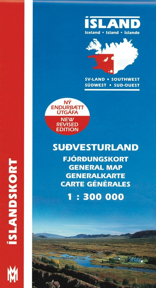 La carte Suð-Vesturland 1:300 000 fait partie du groupe des cartes des quatre parties de lâIslande de MĂĄl og Menning. Elle est centrĂ©e sur sur le sud-ouest du pays dont elle signale les routes, les pistes et les particularitĂ©s.