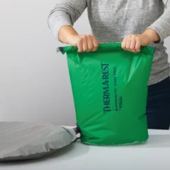 Ce systĂšme de gonflage est facile Ă utiliser et permet un gonflage rapide. Le principe est extrĂȘmement simple : il suffit de connecter le sac-pompe Ă la valve du matelas Thermarest, puis dâemprisonner lâair quâil contient en le fermant. Ensuite, il suffit de vider lâair en direction du matelas. Il vous faudra peu de temps pour devenir expert en gonflage de matelas de randonnĂ©e. Ce sac-pompe est initialement prĂ©vu pour gonfler les matelas gonflables, mais vous pouvez aussi, si besoin, lâutiliser pour gonfler un matelas autogonflant.
