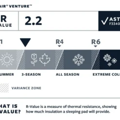 Le NeoAir Venture de Thermarest est un matelas gonflable dotĂ© de cloisons horizontales qui stabilisent le matelas pour assurer du confort durant toute la nuit. Ce modĂšle utilise la technologie WaveCore qui ralentit la perte de chaleur grĂące Ă une couche de cloisons horizontales ondulĂ©es. Cette structure permet dâaugmenter trĂšs nettement lâisolation en comparaison Ă un matelas pneumatique non isolĂ©. Il dispose d’une isolation pour un usage 2 ou 3 saisons, avec R-Value de 2.2 avec la nouvelle norme ASTM F3340-18. Le tissu en polyester 50 deniers est robuste et durable.Â