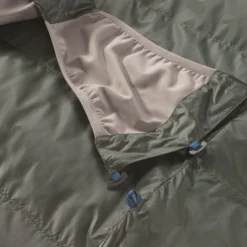 - Pour protéger du froid : capuche enveloppante avec sangle de réglage, collerette pour bloquer les pertes de chaleur, rabat de protection le long du zip.