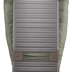 Isolation par zone avec plus de garnissage sur le dessus quâau-dessous, car en dormant, le poids de votre corps Ă©crase le garnissage. Câest le matelas (non fourni) qui assure lâisolation et qui barre le froid venant du sol. Câest pour cette raison que dans le dos, vous pourrez attacher les deux connecteurs amovibles SynergyLink afin de lier votre matelas au Questar 20F/-6C. Dans la nuit, lorsque vous bougerez votre matelas vous suivra !