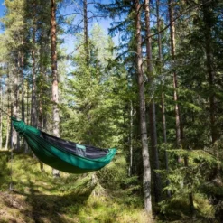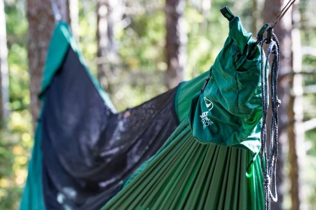 La ligne de crĂȘte intĂ©grĂ©e permet de garder une forme confortable et de fixer le sac de rangement. Hamac rĂ©alise en nylon 20 deniers respirant et Ă sĂ©chage trĂšs rapide.