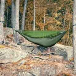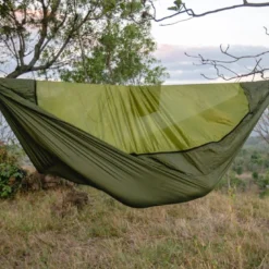 La ligne de crĂȘte intĂ©grĂ©e permet de garder une forme confortable et de fixer le sac de rangement. Hamac rĂ©alise en toile de parachute ultra rĂ©sistante et agrĂ©able au toucher.