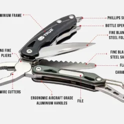 Le Seven de True Utility est un outil multitool Ă©quipĂ© des fonctions essentielles et indispensables pour vous accompagner tous les jours. Il est fabriquĂ© Ă partir dâacier inoxydable et est dotĂ© dâune poignĂ©e en aluminium anodisĂ©.