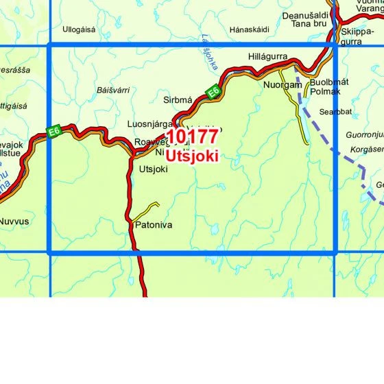 Carte topographique de Utsjoki au 1:50 000 éditée par Nordeca, série Norge-serien. Numéro de carte 10177.