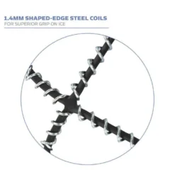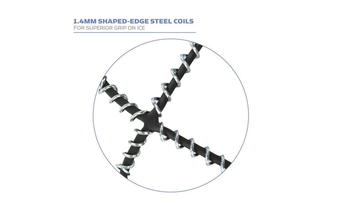 Les chaines en forme de spirales offrent un vrai confort de marche, de la stabilitĂ© et de la sĂ©curitĂ©, tout en conservant une foulĂ©e naturelle. Une fois en place, lâadhĂ©rence est optimale sur de la neige tassĂ©e et sur des sols verglacĂ©s.